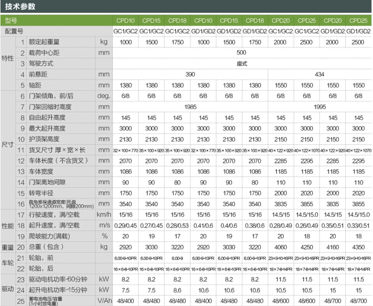 1-2.5吨交流蓄电池平衡重式叉车 1-3.5吨