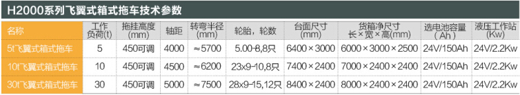 H2000系列飞翼式箱体拖车主要适用于汽车、电子、电器、医药等特殊行业的物流运输,我公司是目前国内唯一开发飞翼式货箱拖车的厂家,能够开发5-80吨系列化飞翼式箱体拖车。