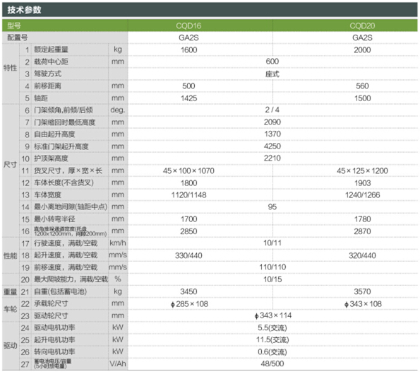 G系列1.6-2吨座式蓄电池前移式叉车