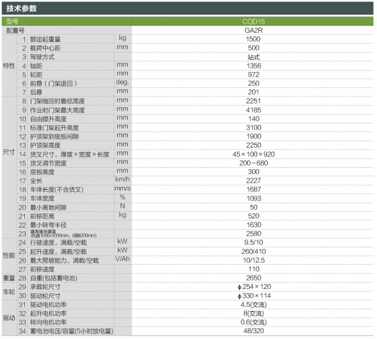 G系列1.5吨站式交流蓄电池前移式叉车
